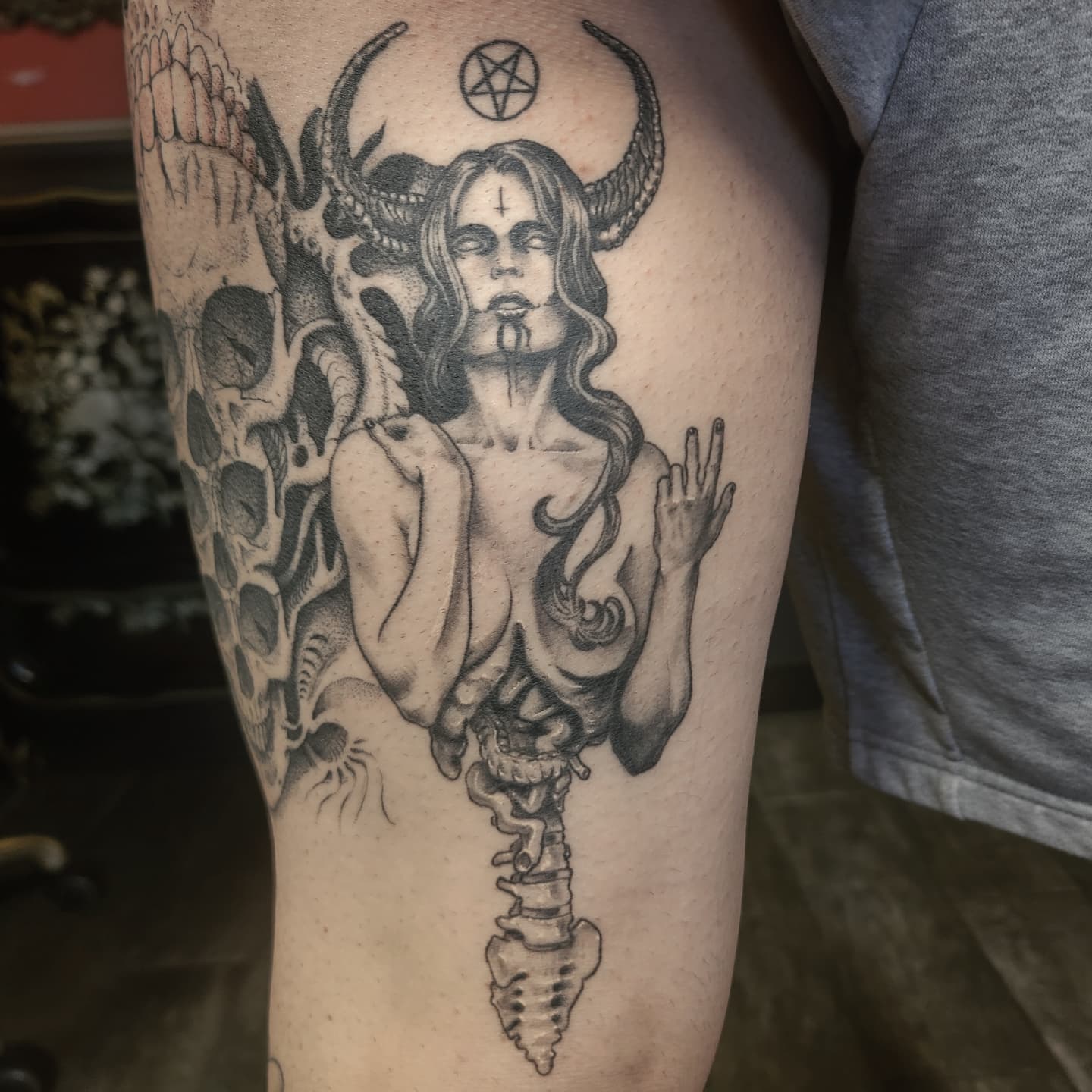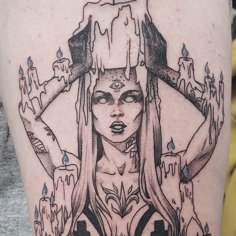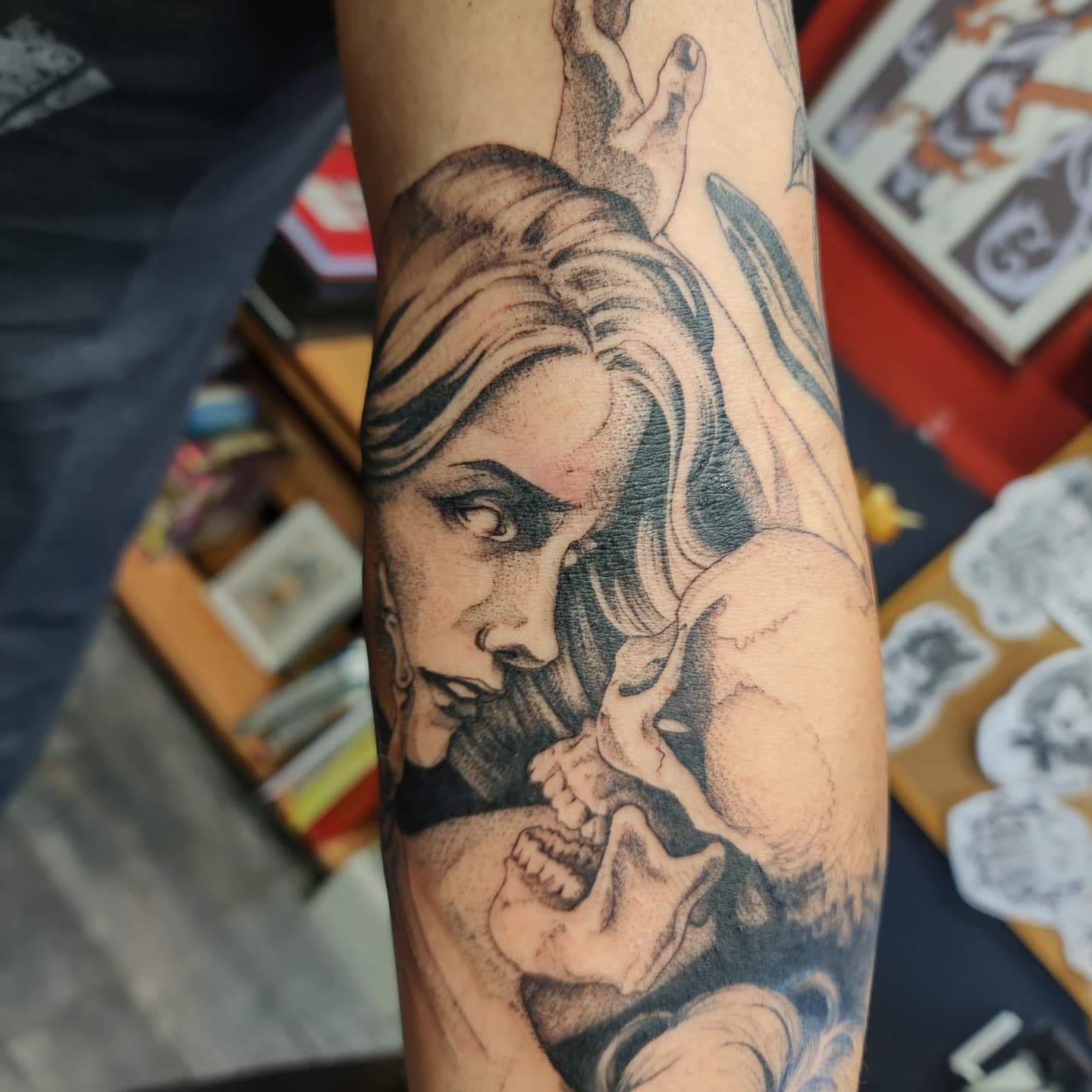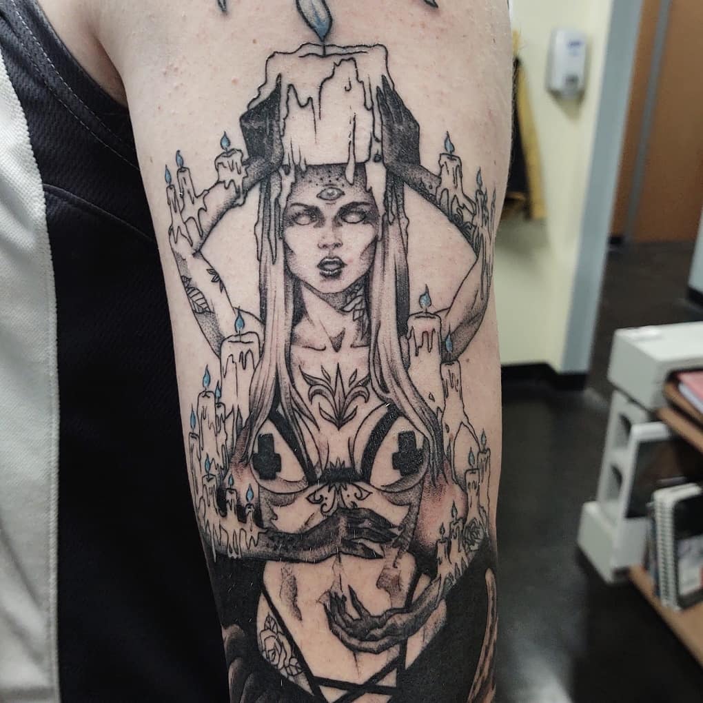 Specializing in illustrative dotwork portraitry, dynamic posing, finelines, and mythical tattoos. Garrett has a plethora of pre-drawn art, and custom options for all your black and grey needs. Micro tattoos and smaller tattoos are also welcome.