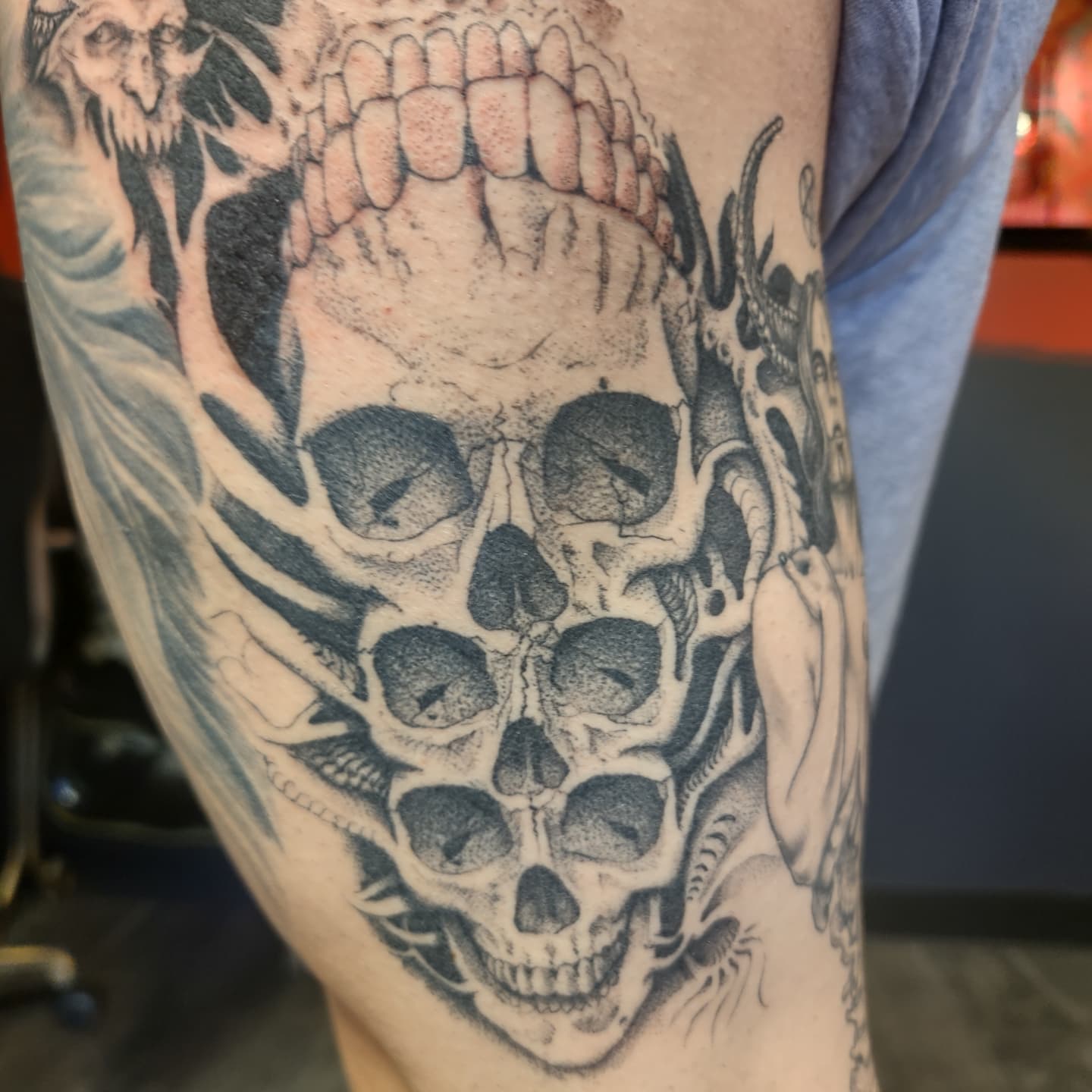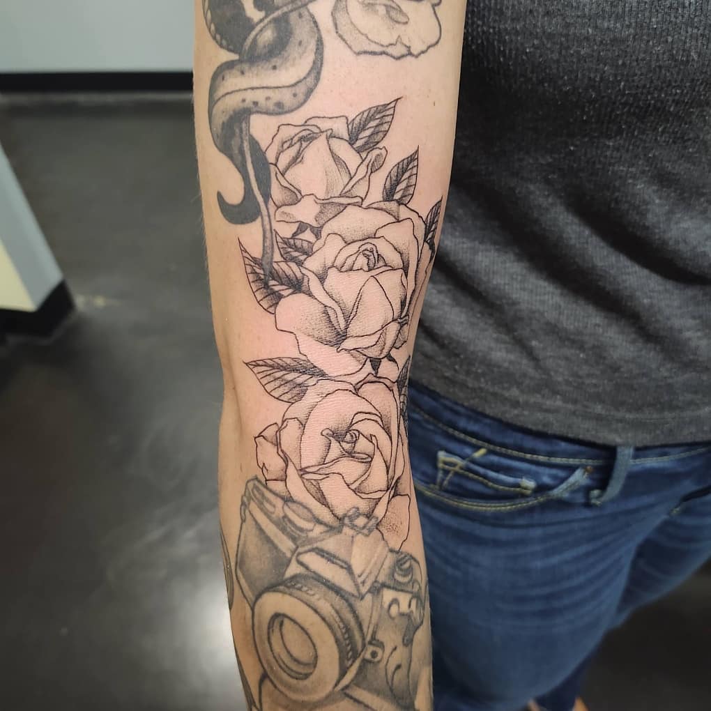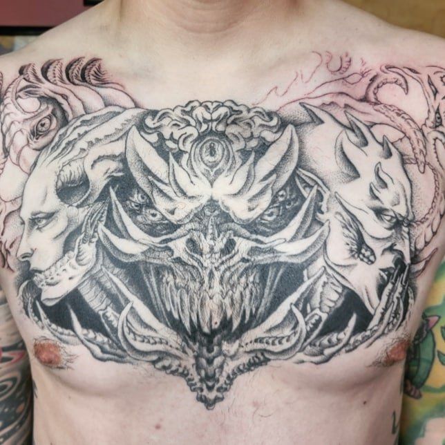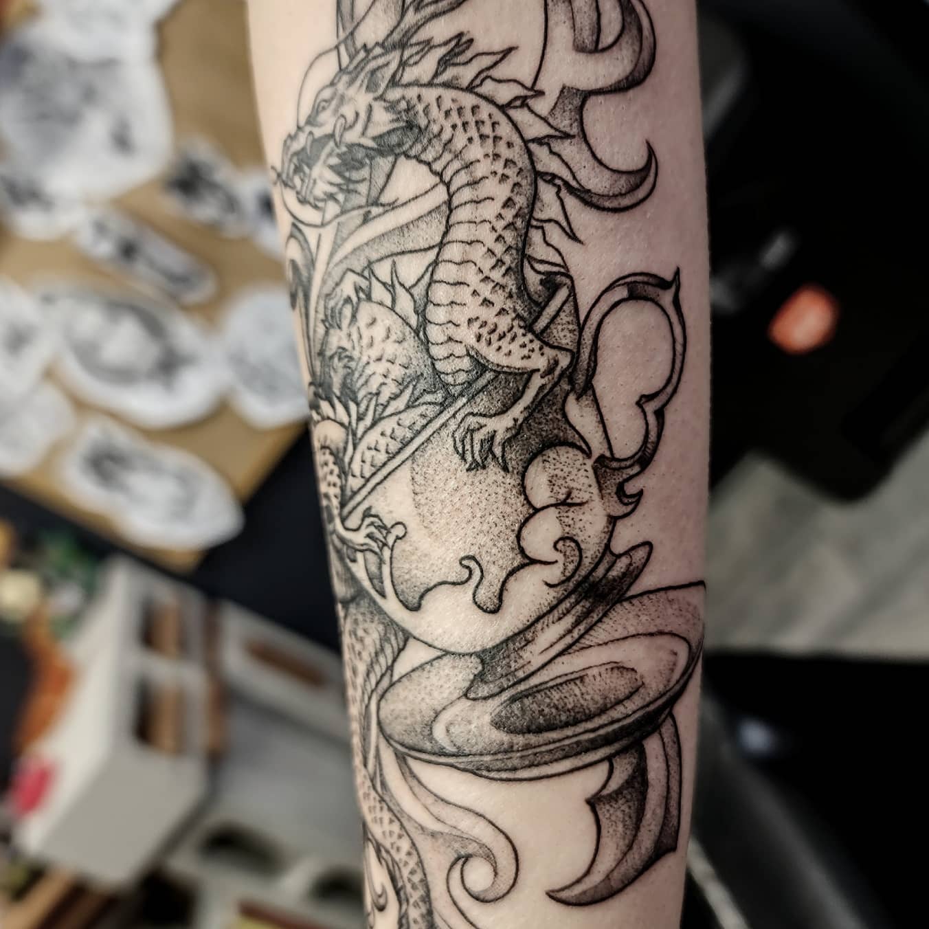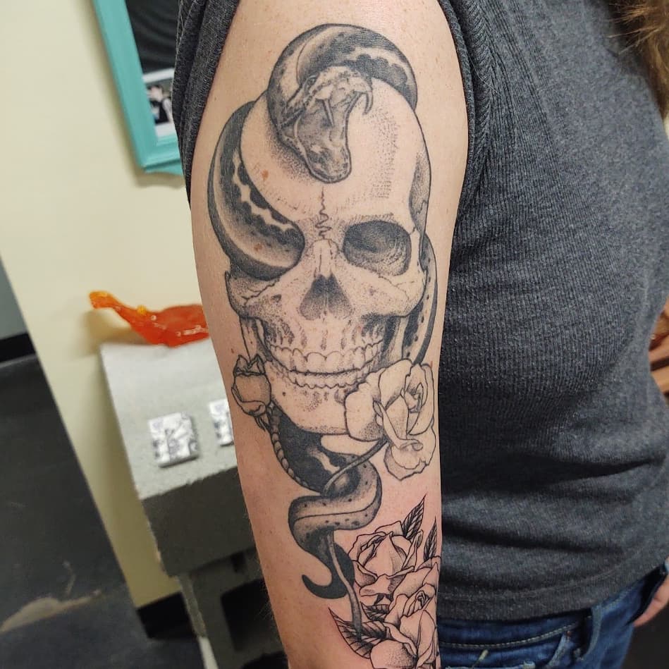 Specializing in illustrative dotwork portraitry, dynamic posing, finelines, and mythical tattoos. Garrett has a plethora of pre-drawn art, and custom options for all your black and grey needs. Micro tattoos and smaller tattoos are also welcome.
